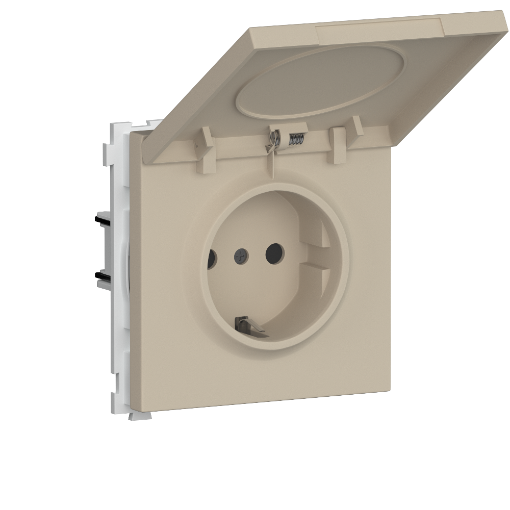 Розетка встраиваемая Donel R98 Schuko с крышкой и заземлением на клеммах Кашемир матовый DA17700-DA52035