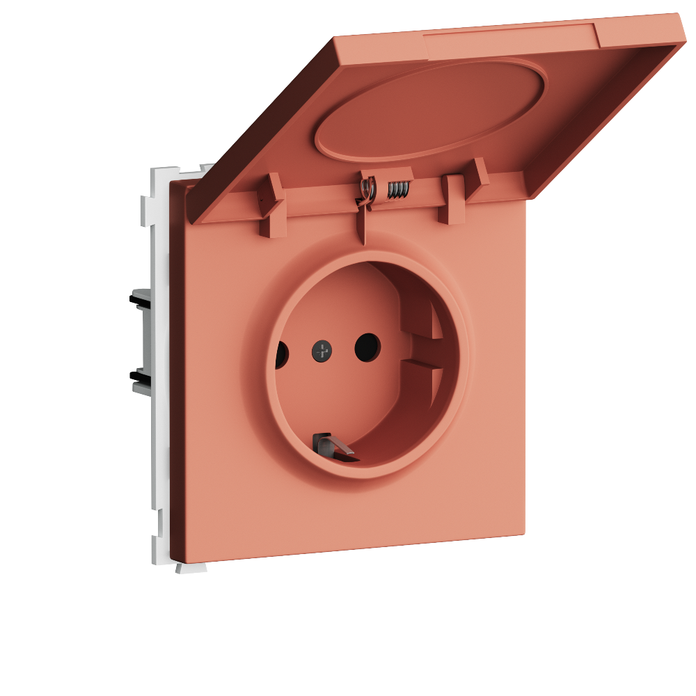 Розетка встраиваемая Donel R98 Schuko с крышкой и заземлением на винтах Коралл матовый DA18800-DA52045