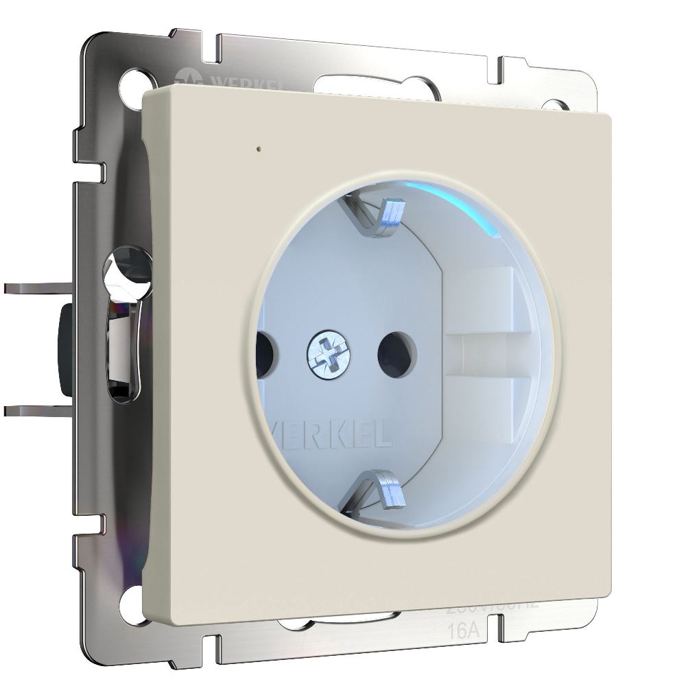 Розетка встраиваемая Werkel с подсветкой, заземлением и шторками Айвори матовый W1171462