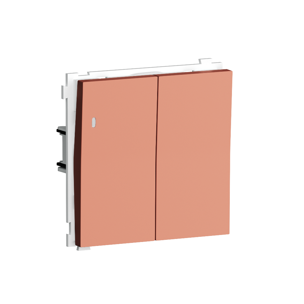 Выключатель двухклавишный встраиваемый проходной Donel R98 с подсветкой Коралл матовый DA03108-DA28545