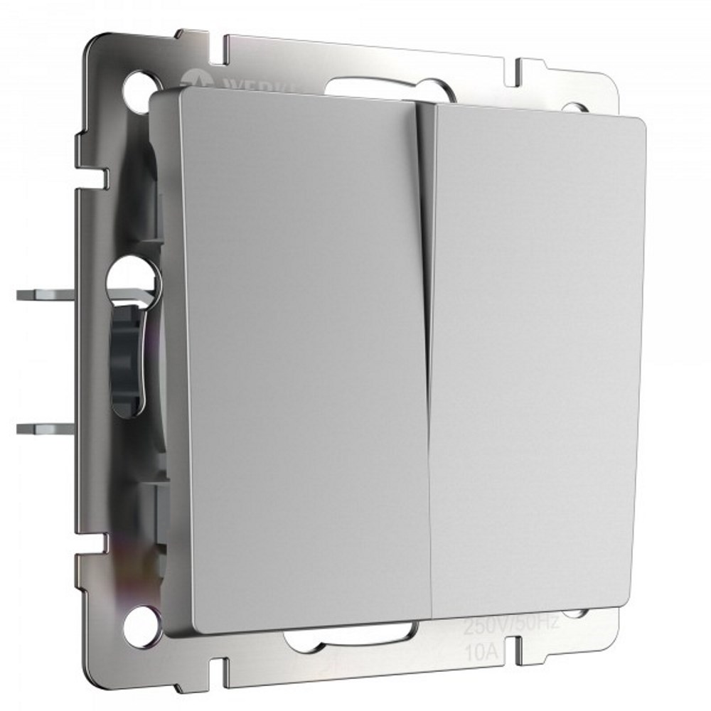 Выключатель двухклавишный встраиваемый проходной Werkel Cеребряный W1122006