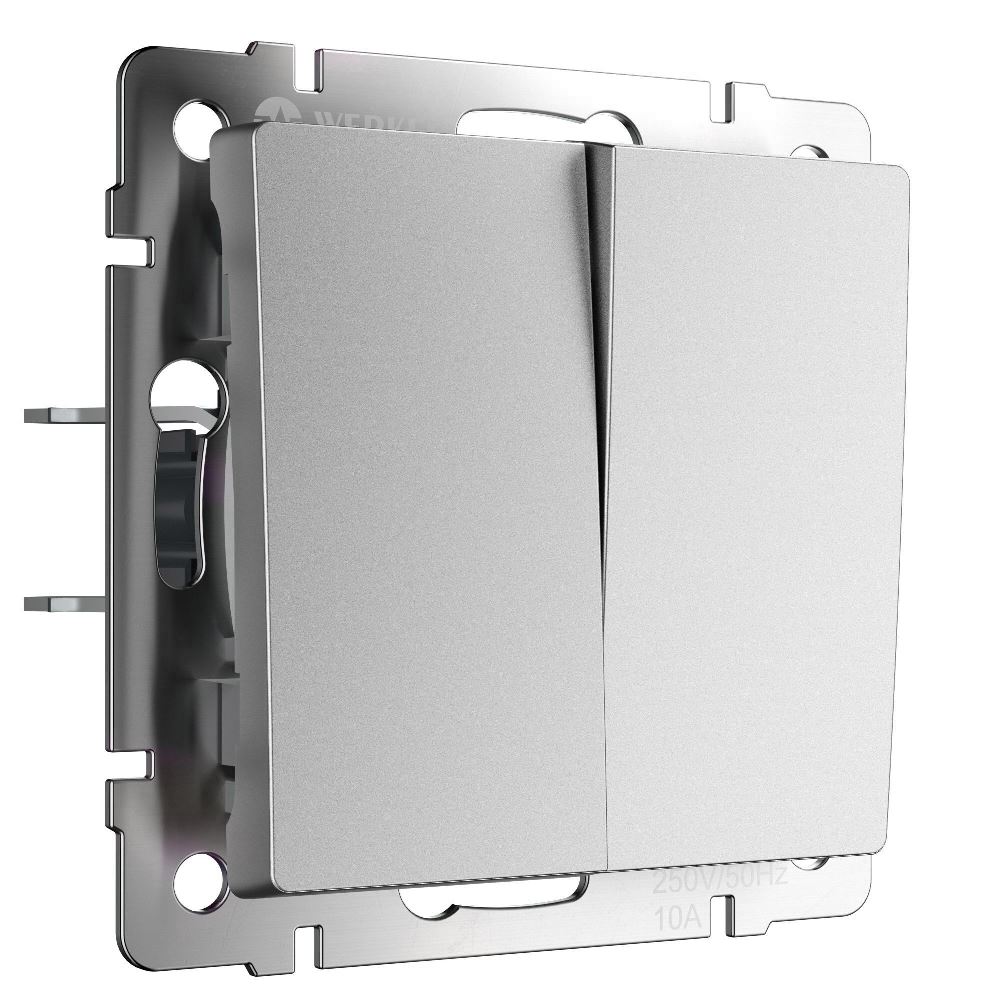 Выключатель двухклавишный встраиваемый Werkel Серебряный матовый W1120065